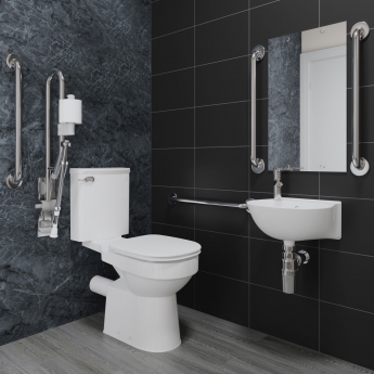 Safety and durability is often a prime concern when it comes to accessible bathrooms, so rest assured that everything we sell conforms to the highest safety standards and is of a reliability standard demanded by hospitals and care homes. For added value for money, take a look at our packs which comprise toilet, rails and basin all in one superb value package. And if you need things in a hurry, remember that all our packs come with 3 day delivery.