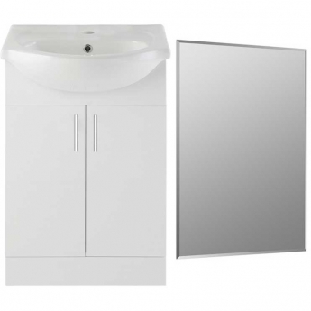 Signature Skyline Floor Standing 2-Door Vanity Unit with Basin 560mm Wide - White Gloss