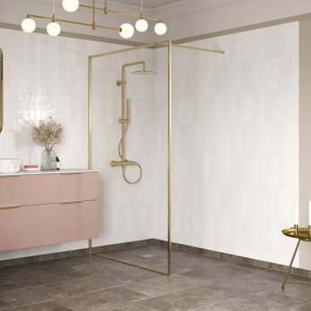 Signature Icon Brushed Brass 1950mm High Wet Room Glass Shower Screen