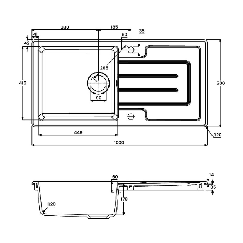 Abode Acton 1.0 Bowl Ceramic Kitchen Sink With Reversible Drainer 1000mm L x 500mm W - White | Thumbnail Image Abode Acton 1.0 Bowl Ceramic Kitchen Sink With Reversible Drainer 1000mm L x 500mm W - White | Thumbnail Image Abode Acton 1.0 Bowl Ceramic Kitchen Sink With Reversible Drainer 1000mm L x 500mm W - White