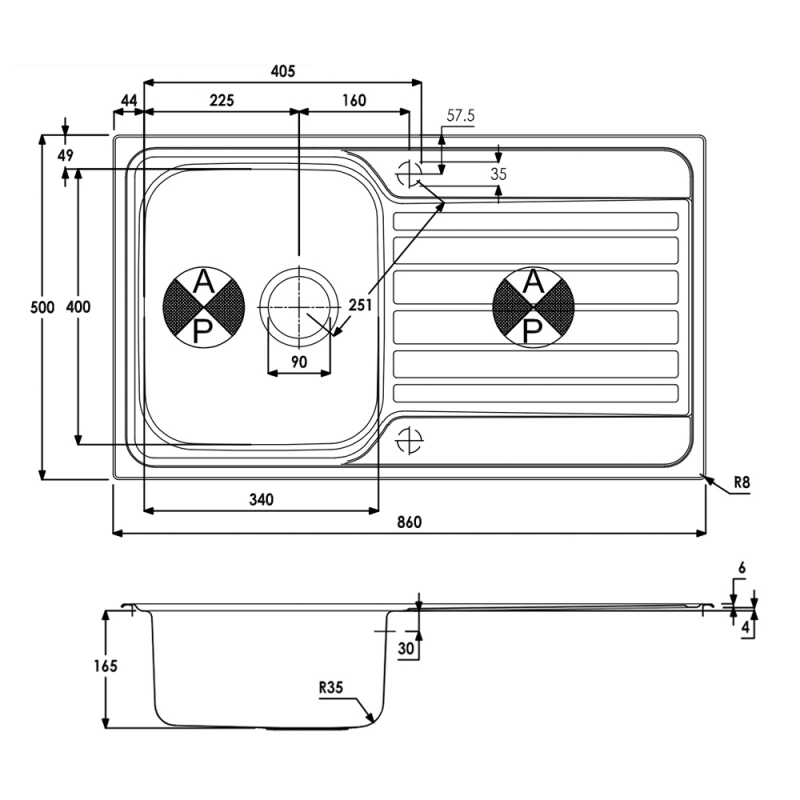 Abode Connekt 1.0 Bowl Inset Kitchen Sink 860mm L x 500mm W - Stainless Steel