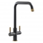 Abode Industria 3 IN 1 Monobloc Kitchen Sink Mixer Tap - Matt Black/Antique Brass