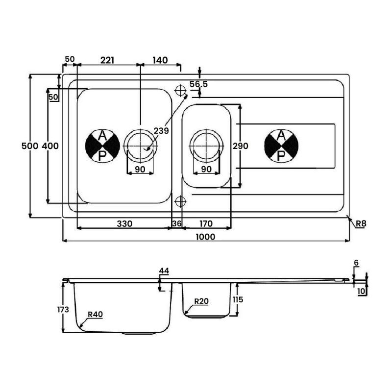 • Included parts: Wastes & rectangular overflow pack for 1.5 & 2.0 short bolt, taphole cover plate, inset stainless steel fixing clips x 10, bowl pipework and rim worktop seal