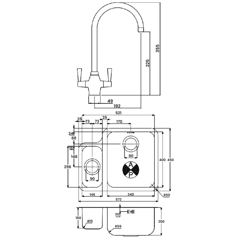 • Included parts: Wastes & rectangular overflow pack for 1.5 & 2.0 short bolt, undermount fixing clips x 4 and bowl pipework