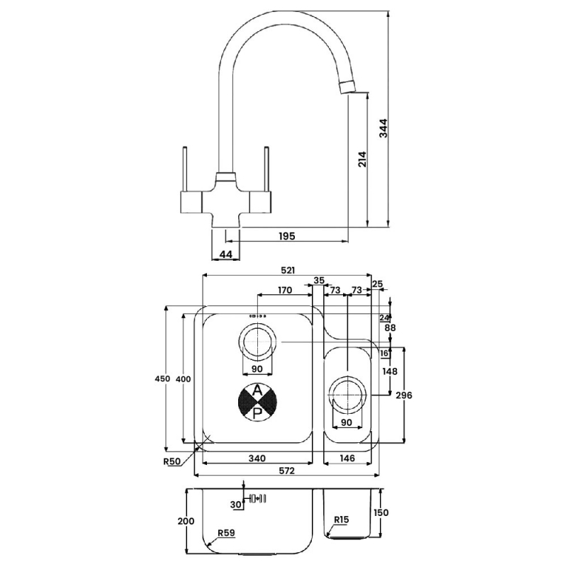 • Included parts: Wastes & rectangular overflow pack for 1.5 & 2.0 short bolt, undermount fixing clips x 4 and bowl pipework