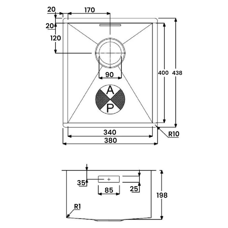 Abode Matrix R0 1.0 Bowl Undermount Kitchen Sink 380mm L x 438mm W - Stainless Steel | Thumbnail Image Abode Matrix R0 1.0 Bowl Undermount Kitchen Sink 380mm L x 438mm W - Stainless Steel | Thumbnail Image Abode Matrix R0 1.0 Bowl Undermount Kitchen Sink 380mm L x 438mm W - Stainless Steel