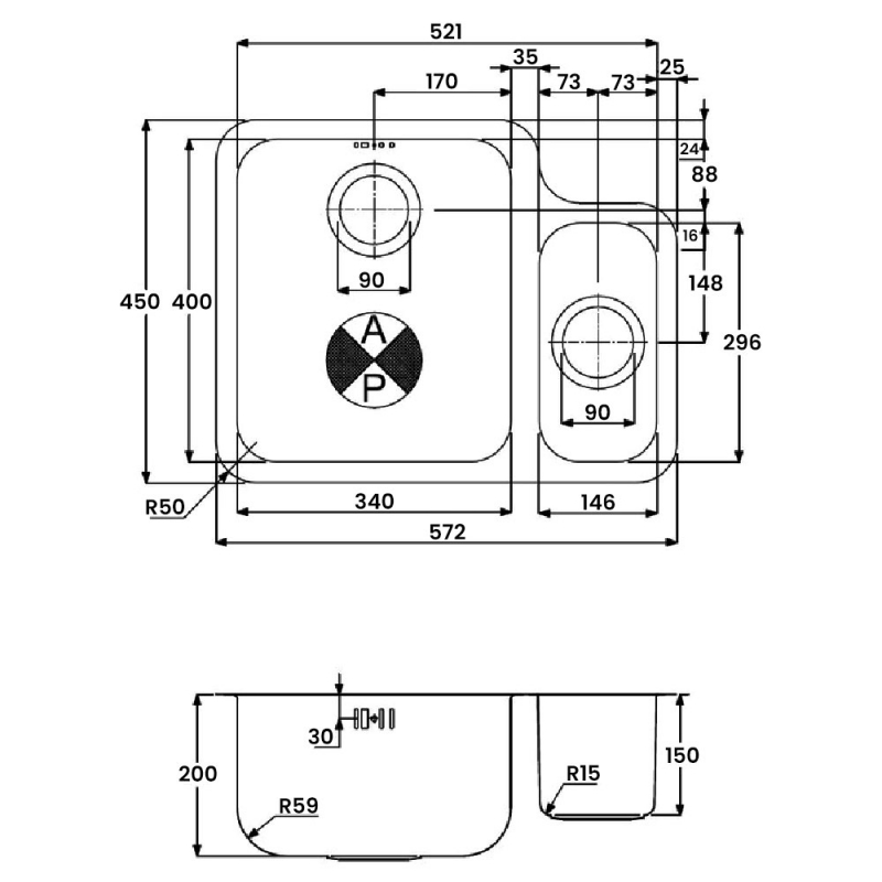 • Included parts: Wastes & rectangular overflow pack for 1.5 & 2.0 short bolt, undermount fixing clips x 4 and bowl pipework