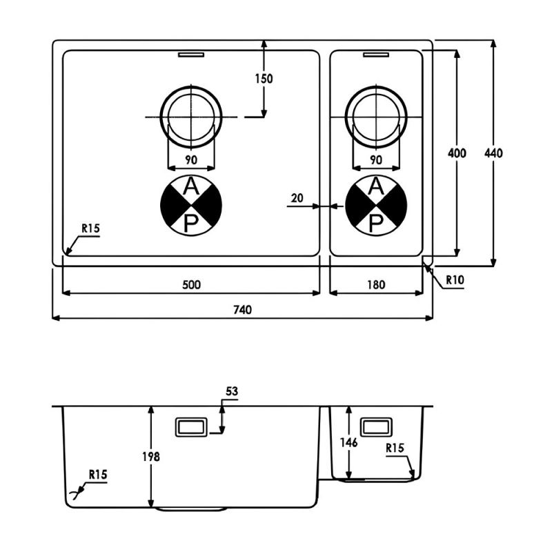 Kitchen Sink Width440mm