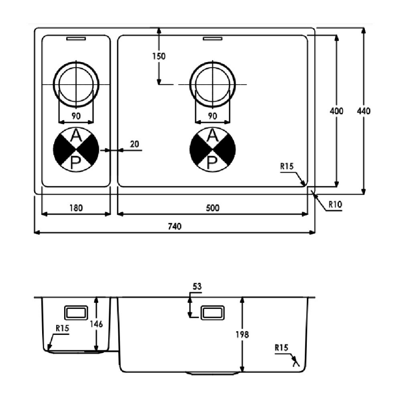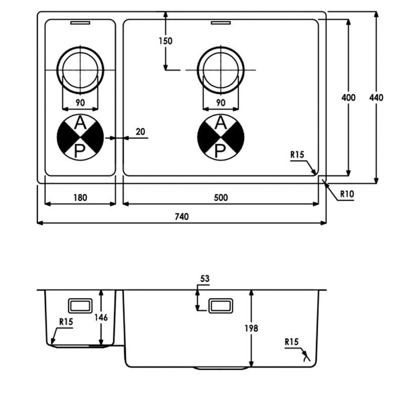 Kitchen Sink Depth205mm