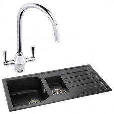 Abode Oriel 1.5 Bowl Granite Inset Kitchen Sink with Astral Sink Tap 950mm L x 480mm W - Black