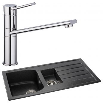 Abode Oriel 1.5 Bowl Granite Inset Kitchen Sink with Specto Sink Tap 950mm L x 480mm W - Black