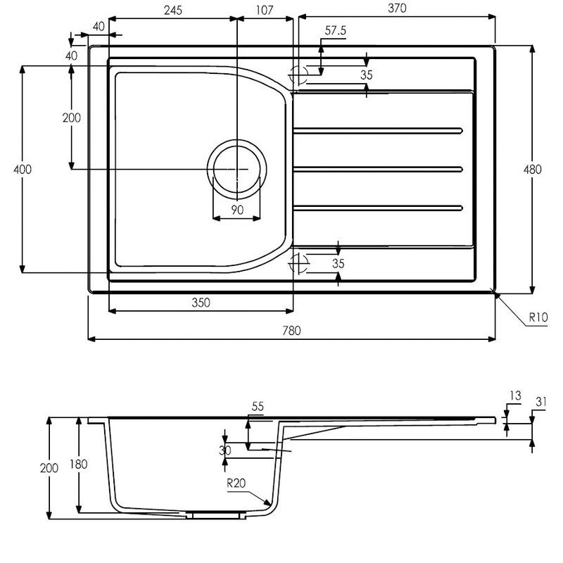 • Included parts: Waste with standard overflow & pipework and composite inset fixing clips x 8