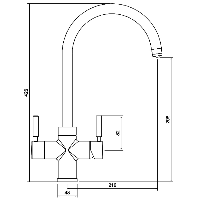 • This tap requires a minimum water pressure of 0.5 bar (hot only); 1.5 bar (cold only) to operate properly