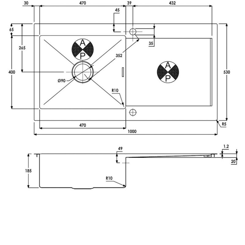 Abode Verve 1.0 Bowl Inset Kitchen Sink 1000mm L x 530mm W - Stainless Steel