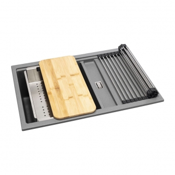 Abode Syncronist Compact 1.25 Bowl Inset/Undermount kitchen Sink 600mm L x 460mm W with Drainer - Metallic Grey