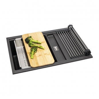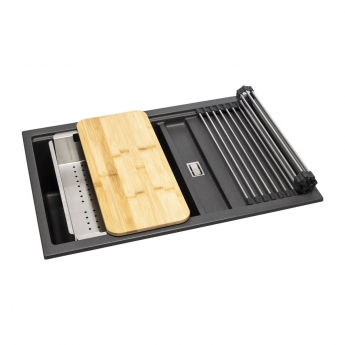 Abode Syncronist Compact 1.25 Bowl Inset/Undermount kitchen Sink 600mm L x 460mm W with Drainer - Metallic Black