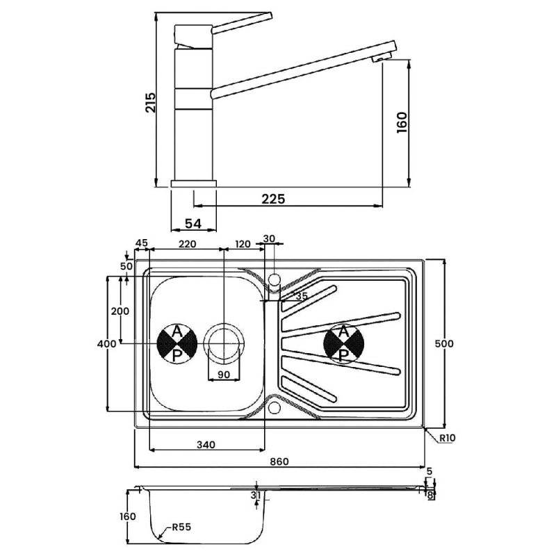 Kitchen Sink Length860mm