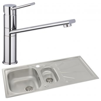 Abode Trydent 1.5 Bowl Inset Kitchen Sink with Specto Sink Tap 1000mm L x 500mm W - Stainless Steel