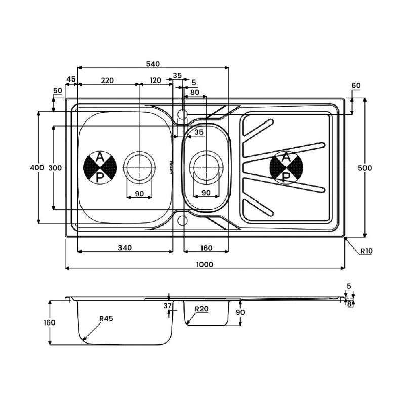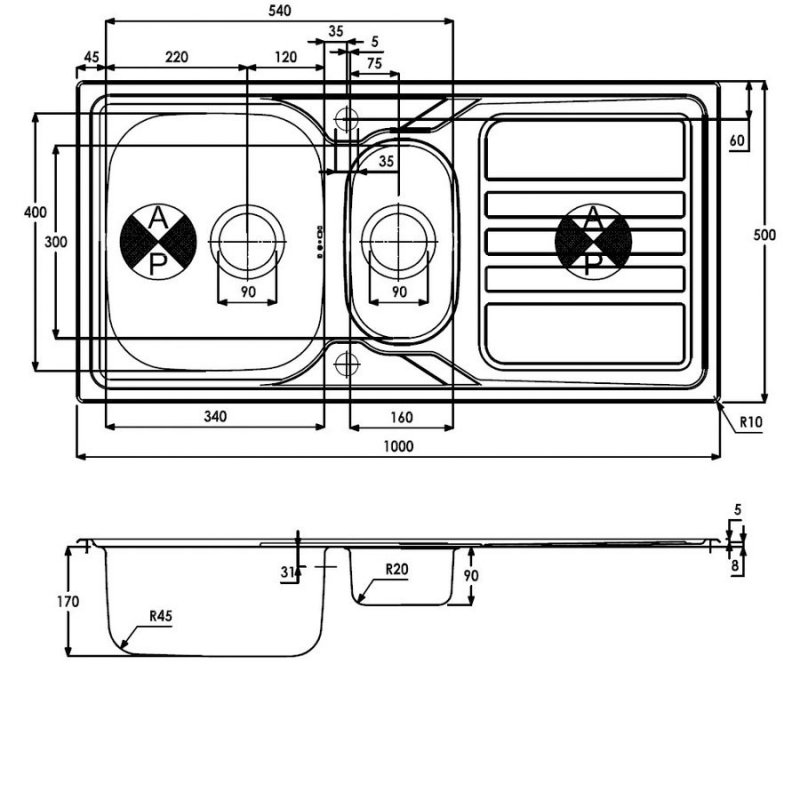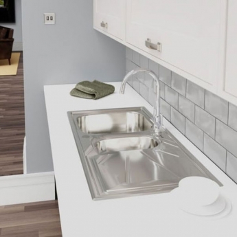 Abode Trydent 1.5 Bowl Inset Kitchen Sink 1000mm L x 500mm W - Stainless Steel