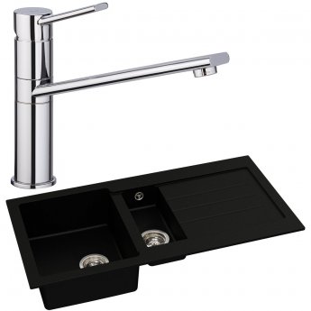 Abode Xcite 1.5 Bowl Granite Kitchen Sink with Specto Sink Tap 1000mm L x 500mm W - Black Metallic