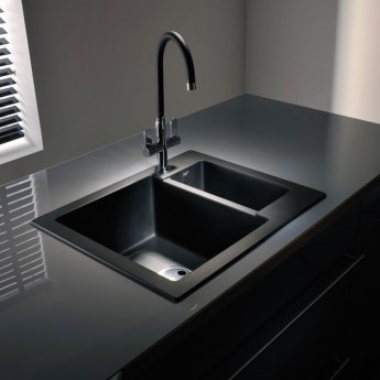 Abode Zero 1.5 Bowl Granite Inset Kitchen Sink 600mm L x 500mm W - Black Metallic