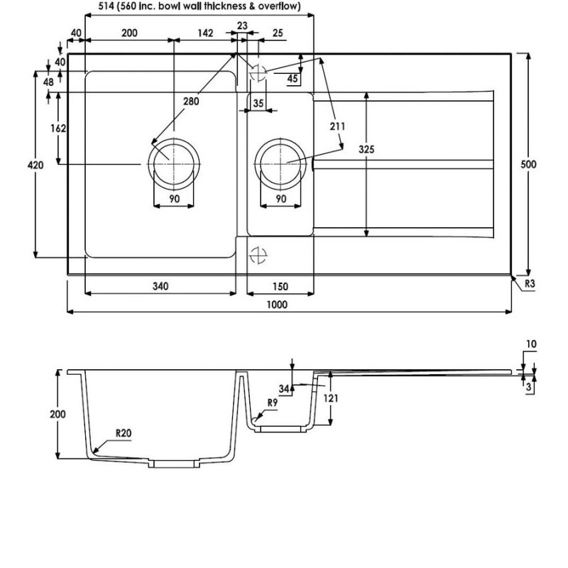 Kitchen Sink Depth220mm