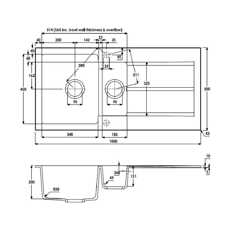Abode Zero 1.5 Bowl Granite Kitchen Sink With Reversible Drainer 1000mm L x 500mm W - White | Thumbnail Image Abode Zero 1.5 Bowl Granite Kitchen Sink With Reversible Drainer 1000mm L x 500mm W - White | Thumbnail Image Abode Zero 1.5 Bowl Granite Kitchen Sink With Reversible Drainer 1000mm L x 500mm W - White