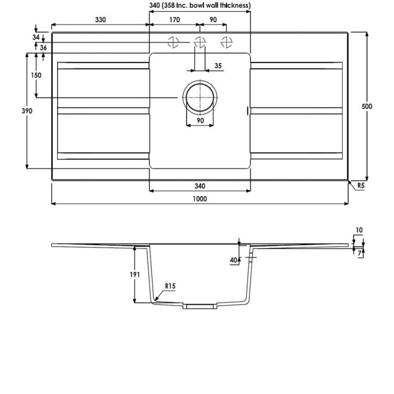• Durable matt finish granite composite construction throughout
