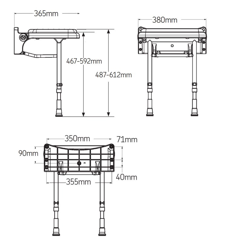 • Adjustable seat height 467mm - 592mm - can be adjusted at the point of installation
