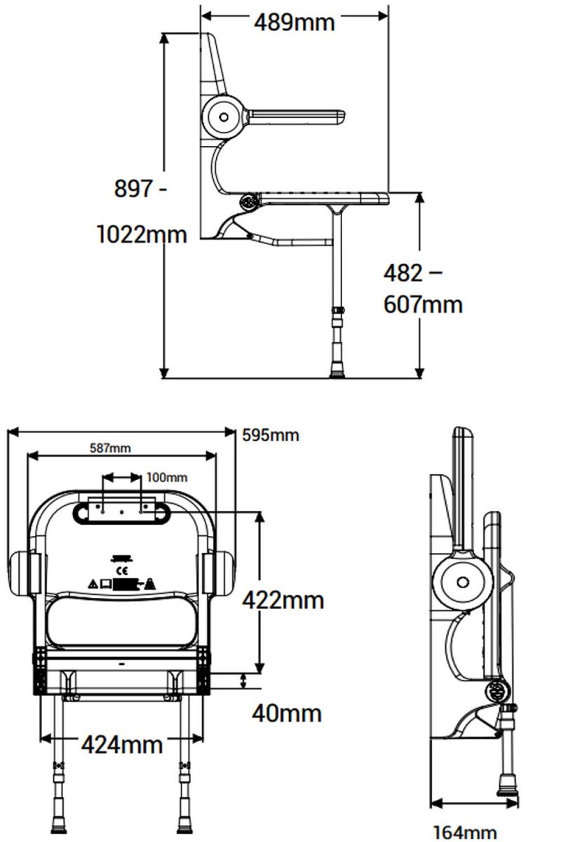• Supplied with 1 x shower Seat standard fold up padded mid grey