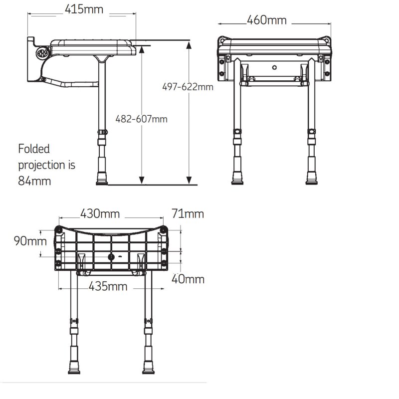 • Adjustable seat height 482mm - 607mm - Can be adjusted at the point of installation