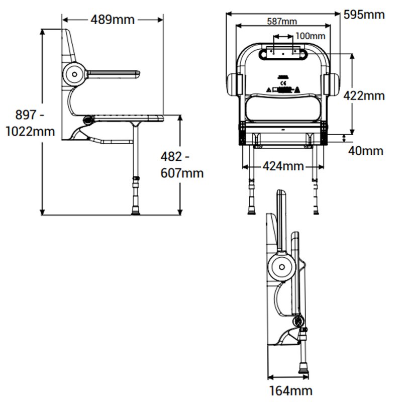 • Adjustable seat height 482mm - 607mm - can be adjusted at the point of installation