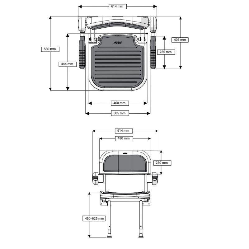 • Adjustable seat height 450mm - 625mm - Can be adjusted at the point of installation