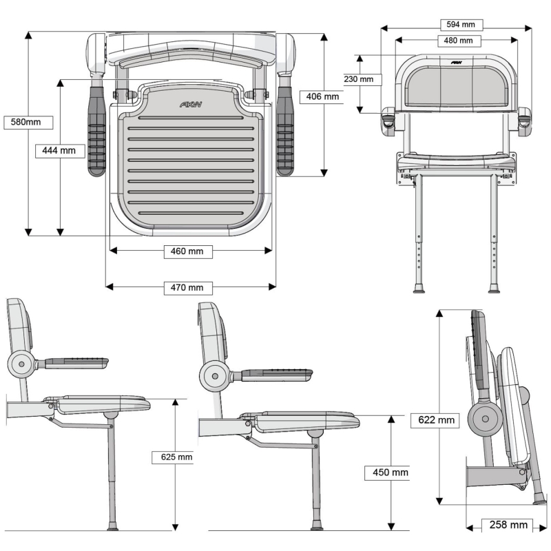• Adjustable seat height 450mm - 625mm - Can be adjusted at the point of installation