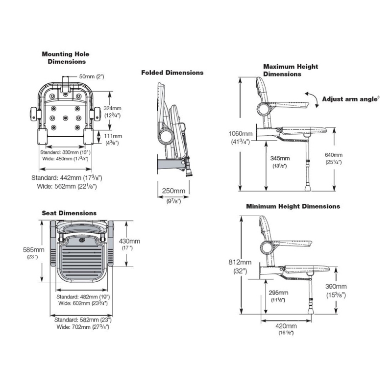 • Independent folding arms - allow for easy access from either side, Provides lateral support for flexible seated access