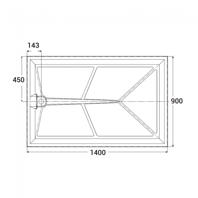 - The images showing the tray in a room depict a 1400mm x 900mm rectangular model