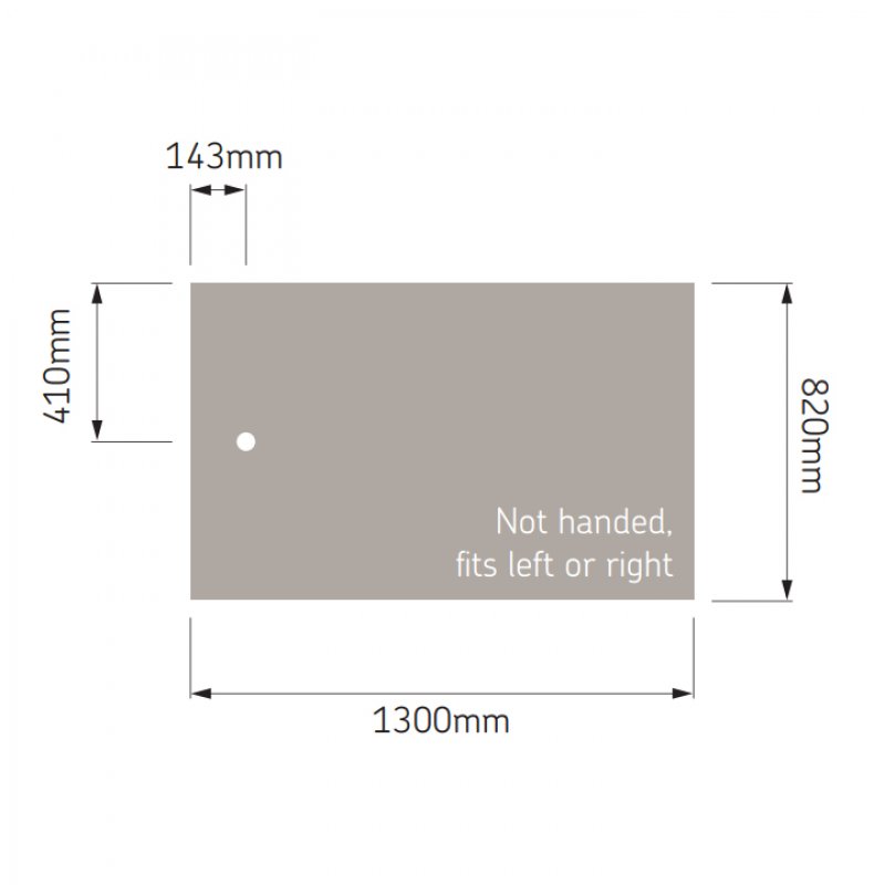 - Market-leading slip-resistant shower tray measuring 1300mm x 820mm