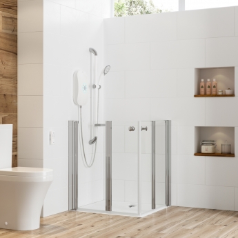 The AKW Larenco Corner Care Double Bi-fold Corner Entry Shower Enclosure 1200mm x 1200mm comes from the Larenco range of shower doors, by AKW bathroom collection. This bi-fold shower door folds back on itself, which makes it ideal for the bathroom with limited space. Keeping this in mind AKW has designed this Bi-fold Shower Door, to provide a comfortable and luxurious showering experience.