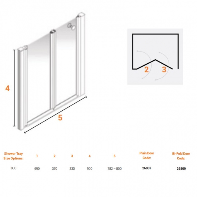 AKW Larenco Alcove Half Height Bi-Fold Shower Door 800mm Wide - Non Handed