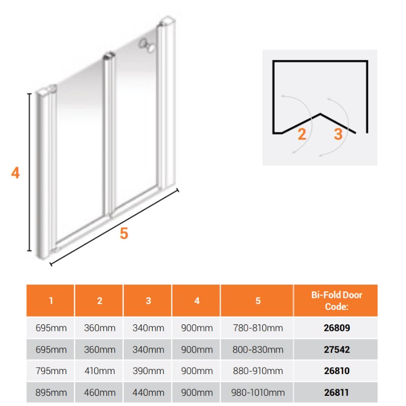 • 1 x Larenco Care Bi-Fold Door 900mm Without Handle