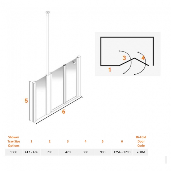 AKW Larenco Alcove Half Height Bi-Fold Extended Shower Door 1300mm Wide - Non Handed AKW Larenco Alcove Half Height Bi-Fold Extended Shower Door 1300mm Wide - Non Handed