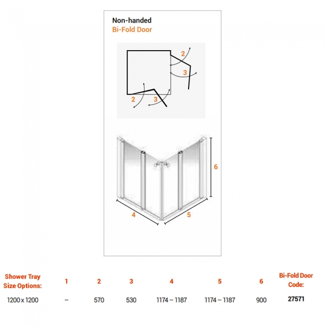 AKW Larenco Corner Care Half Height Bi-Fold Shower Door 1200mm x 1200mm Wide - Non Handed AKW Larenco Corner Care Half Height Bi-Fold Shower Door 1200mm x 1200mm Wide - Non Handed AKW Larenco Corner Care Half Height Bi-Fold Shower Door 1200mm x 1200mm Wide - Non Handed