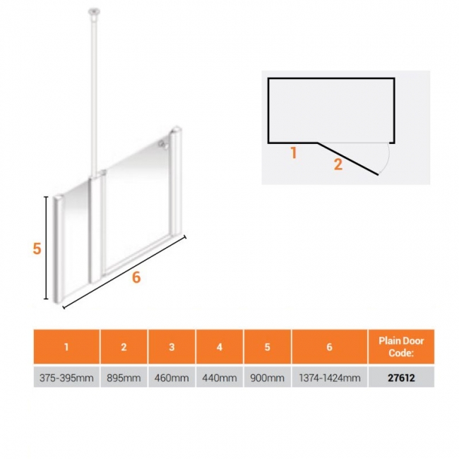AKW Larenco Alcove Half Height Extended Shower Door 1700mm Wide - Non Handed