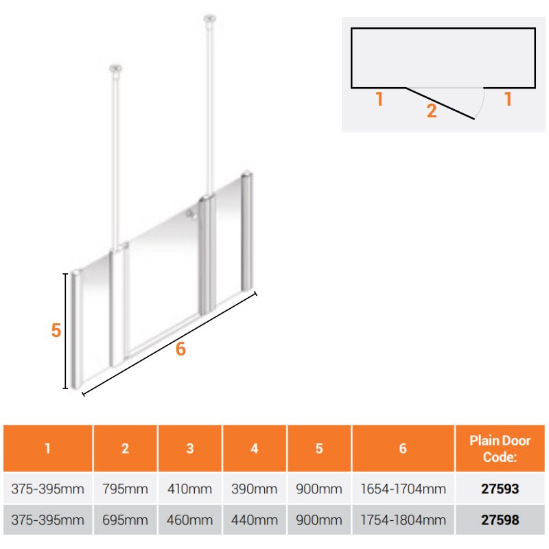 AKW Larenco Alcove Half Height Extended Shower Door 1800mm Wide - Non Handed | Product Image AKW Larenco Alcove Half Height Extended Shower Door 1800mm Wide - Non Handed