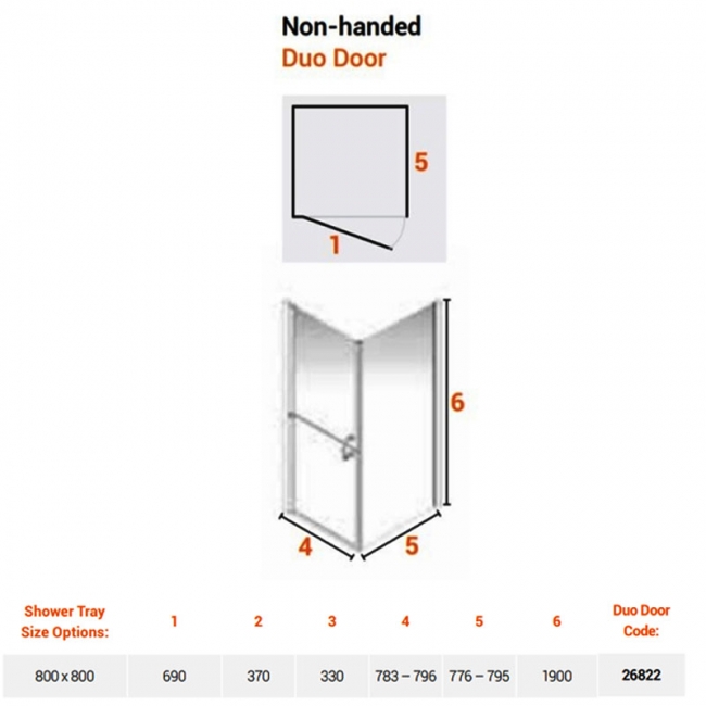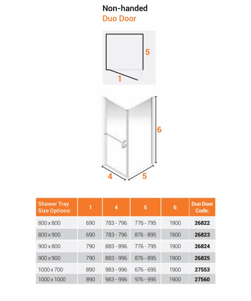• Supplied with 1x800mm wide shower door,1x800mm side panel
