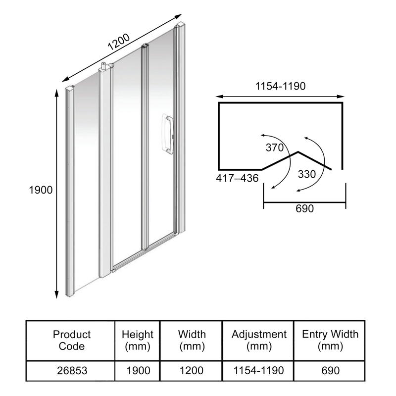 Shower Door Width1200mm