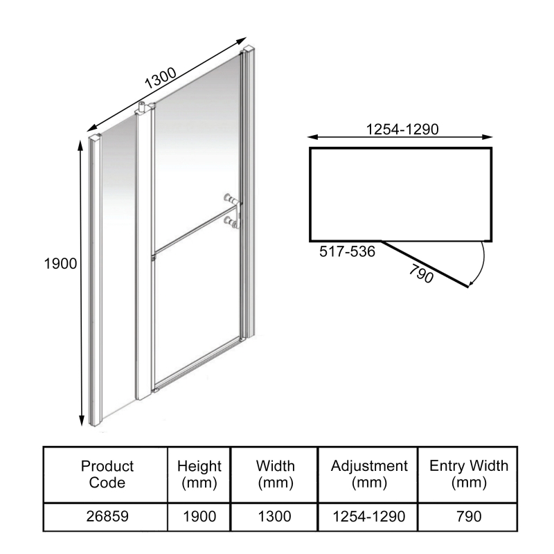 AKW Larenco Duo Inline Hinged Shower Door 1300mm Wide - 6mm Glass