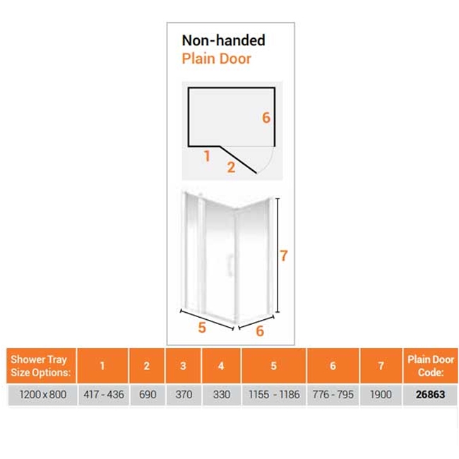 • Supplied with 800mm wide shower door with 400mm wide In-line Panel and 800mm side panel