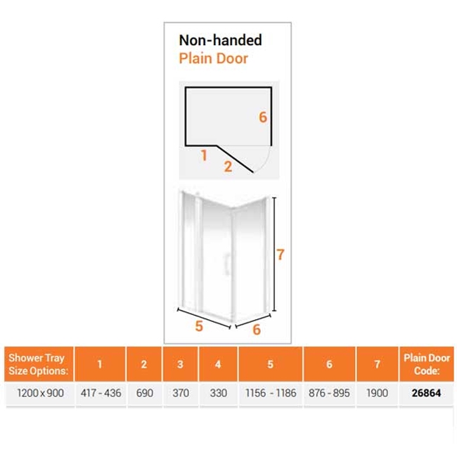 • Supplied with 800mm wide shower door with 400mm wide In-line Panel and 900mm side panel