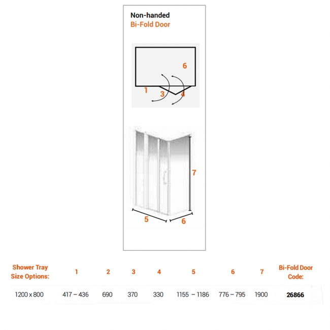 • Supplied with 1x800mm wide bi-fold door,1x800mm wide side panel and 1x400mm wide in-line panel